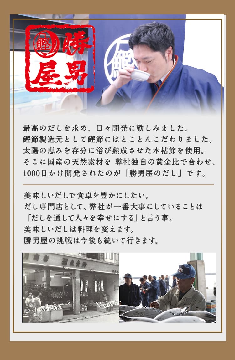 • 美味しい勝男屋のだしを使う事で料理上手になったと自画自賛の主婦です。