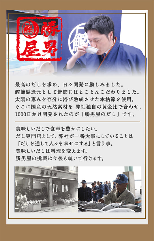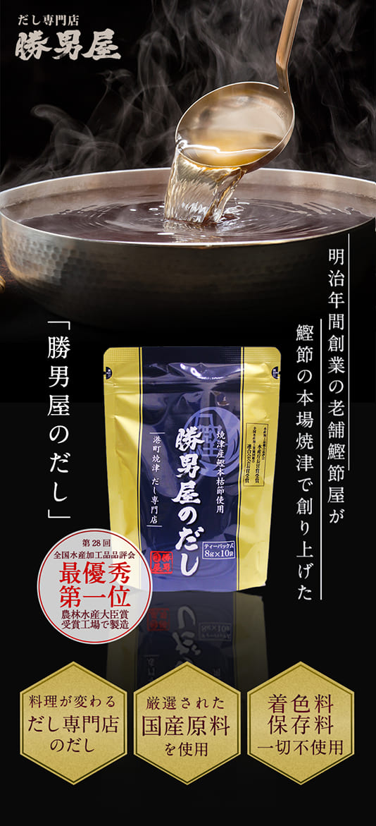 さらに初回は「勝男屋の鰹桜えび煎餅&だしレシピ集」をプレゼント!
